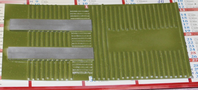 Plancher du cockpit. Plaque de styrène de 0.75mm et « strips » 1.5x2mm (Marque Evergreen)